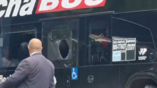 El hecho ocurrió cuando el ómnibus ingresaba a las inmediaciones del estadio, donde se juega el encuentro. El proyectil golpeó uno de los laterales del vehículo, en la parte baja del micro, generando tensión entre los medios, pero los jugadores pinchas seguían de fiesta.